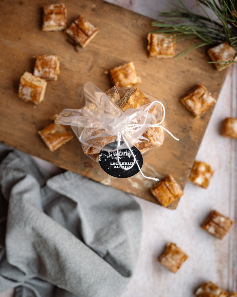 Spécialité alsacienne moelleuse et parfumée, préparée avec du miel local, des épices et des amandes. Affinés avec une touche de kirsch et confectionnés par notre chef boulanger, nos Leckerlis offrent toute la gourmandise et l’authenticité de la tradition.